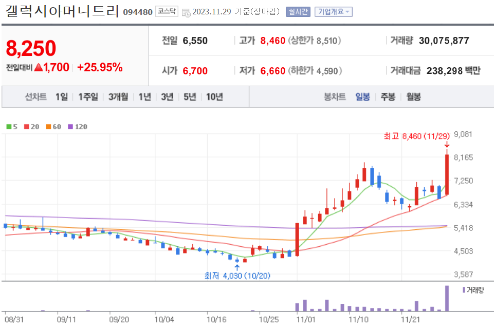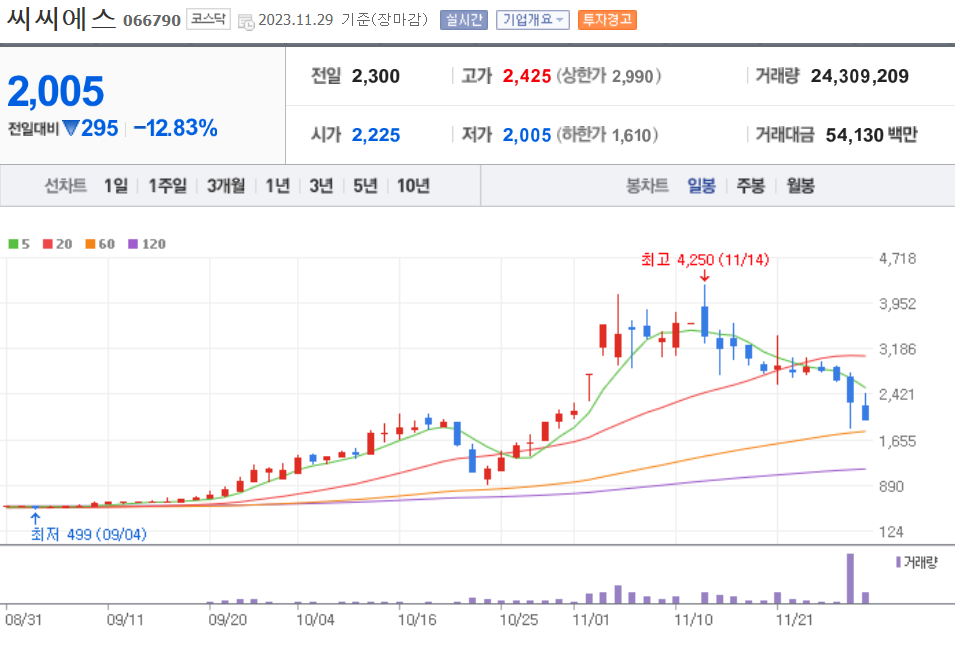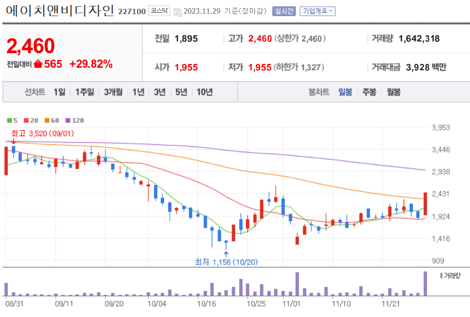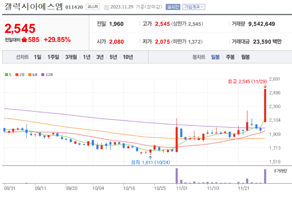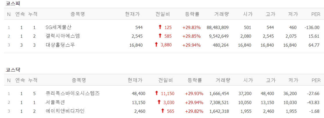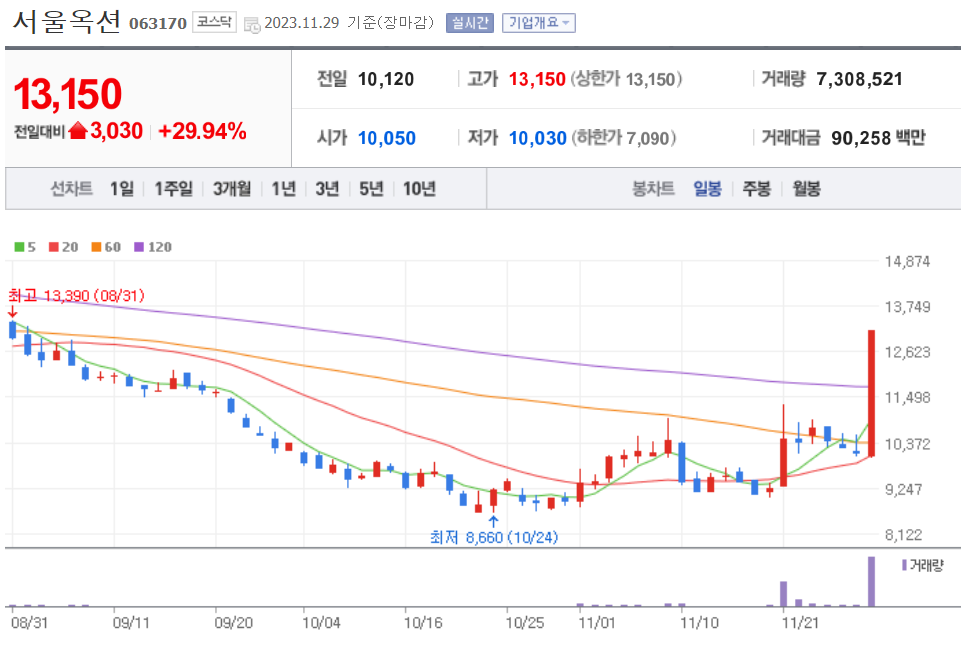 | 20231130 주식 상한가, 거래량 천만 이상 종목 차트 (0) | 2023.11.30 |