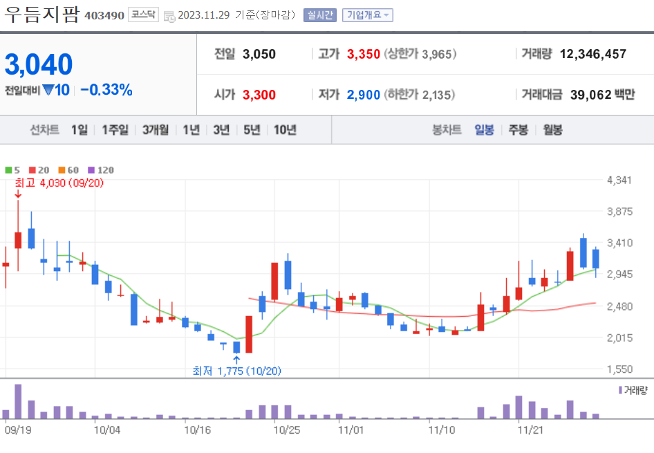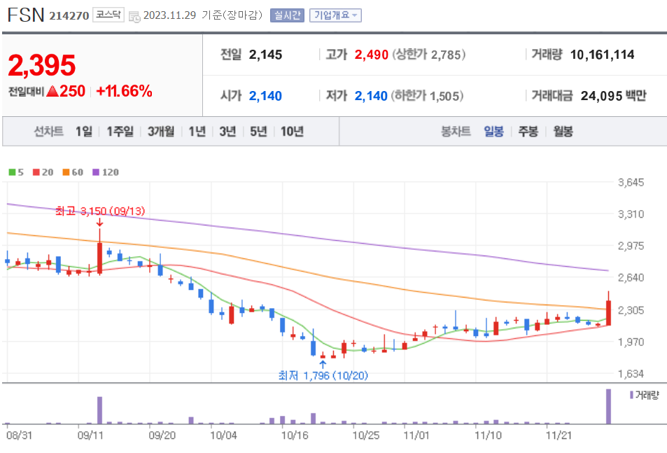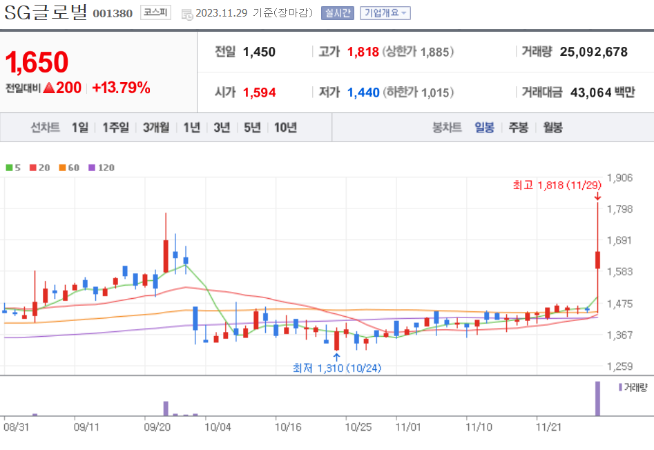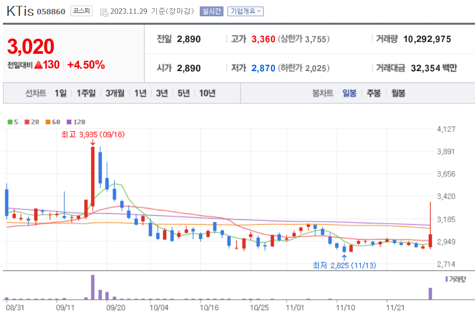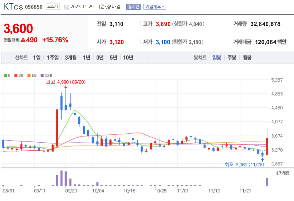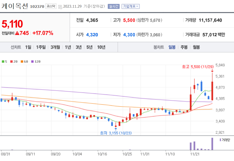 | 20231130 주식 상한가, 거래량 천만 이상 종목 차트 (0) | 2023.11.30 |