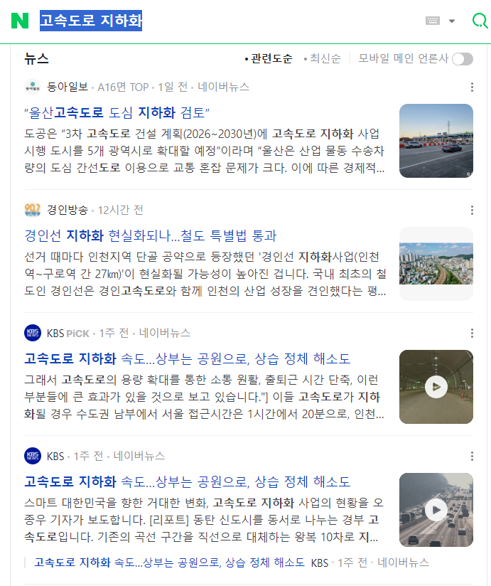일단 1주일 전부터 경부고속도로와 경인선 철도 지하화뉴스가 있었고
