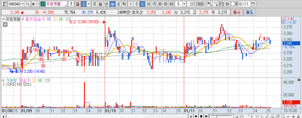 비슷한 종목 중에 특수건설과 동신건설이 있었는데 동신건설은 정치테마주로 분류되어있어 테마가 여러 개면 더 잘 간다는 기대도 있고 지금 차트상 자리가 좋아보여 관심종목에 포함해 두었다. 우원개발도 이낙연후보 관련주로 분류되어있다.