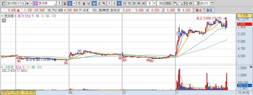 센서뷰가 강세다. 이재용 삼성전자 회장이 새해 첫 경영 행보로 6G를 내세운 가운데, 센서뷰의 6G 핵심 기술이 부각하는 모습이다. 11일 오전 9시 24분 현재 센서뷰는 전일 대비 12.12% 오른 5040원에