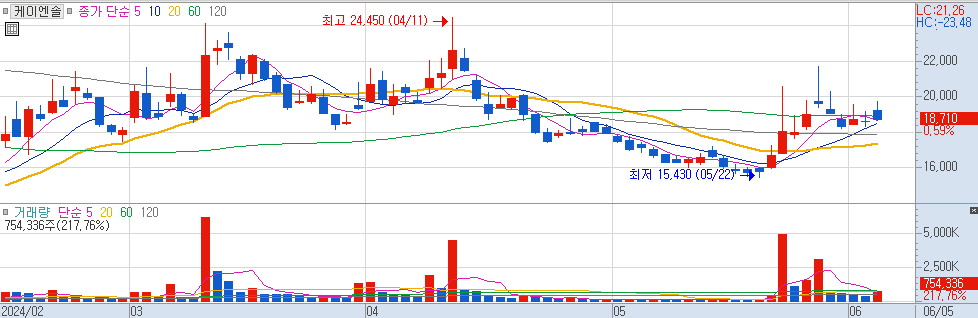 상승폭이 케이엔솔보다 크고 지금 횡보중