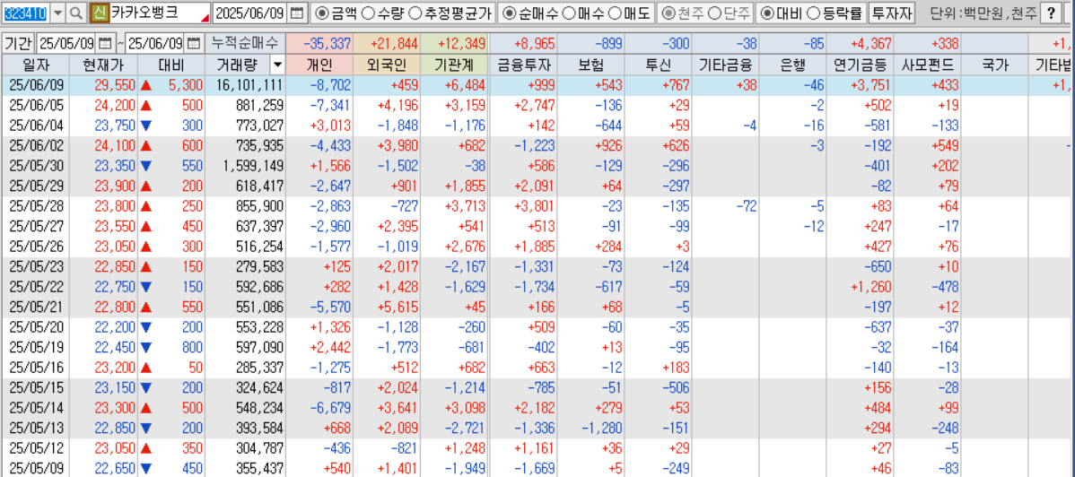 - 2025년 2월 5일, 카카오뱅크는 역대 최대 실적 발표 이후 주가가 전일 대비 7.04% 상승하여 22,800원에 마감했습니다 tfmedia.co.kr.