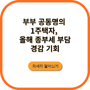 부부 공동명의 1주택자, 올해 종부세 부담 경감 기회